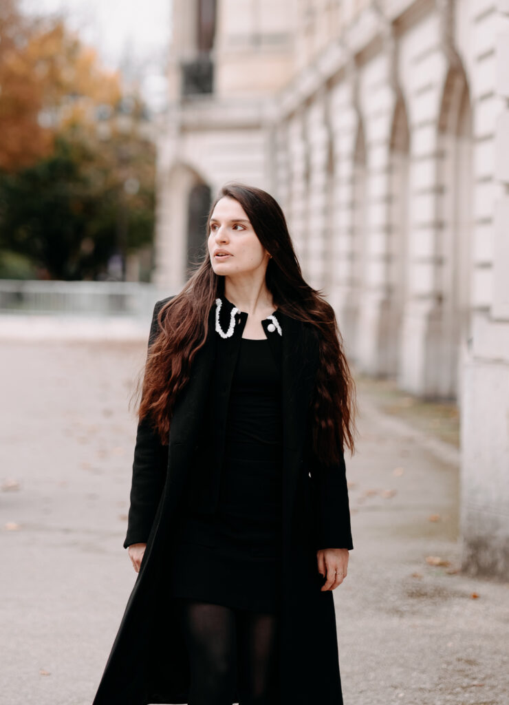 Après une visio préparatoire, nous avons parlé des tenues à porter, des lieux possibles et de l’ambiance que nous voulions créer : naturelle, spontanée, avec ce mood “balade au musée en automne”. Camille a posé toutes ses questions en amont, et j’ai pris le temps de lui expliquer chaque étape.