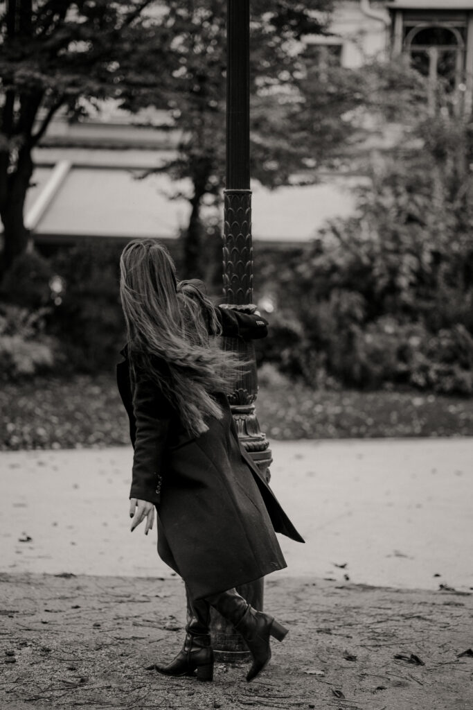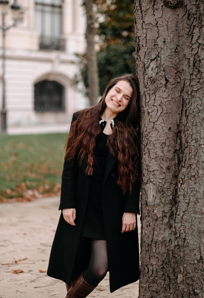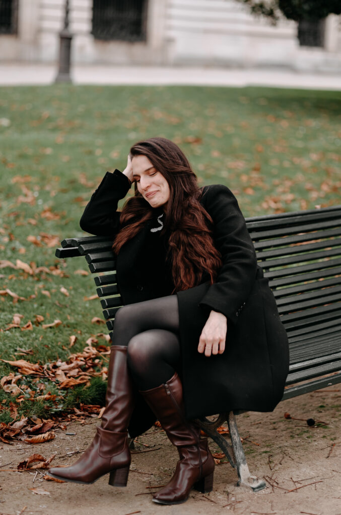 Nous avons ensuite poursuivi dans les jardins du musée. L’automne apportait ses teintes douces, qui subliment Camille à chaque pas. Elle ose, elle rit, elle s’exprime pleinement… et c’est exactement cette authenticité qui se reflète dans les photos finales. Le résultat est magnifique, à la fois spontané, vivant et profondément révélateur de qui elle est.