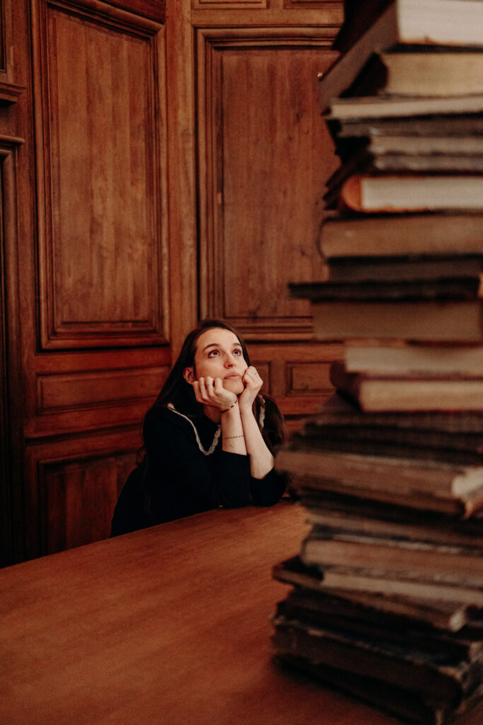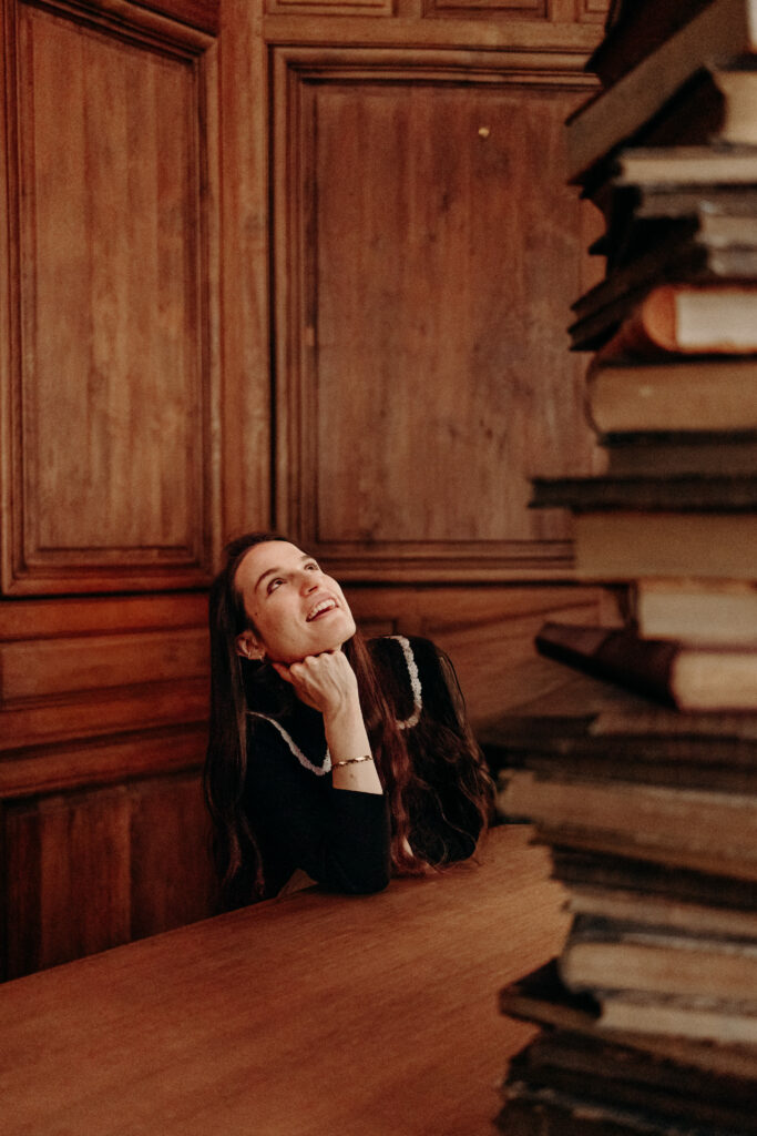 Nous avons convenu d’une date, et Camille m’a partagé ses goûts ainsi que des inspirations de photos qui lui parlaient : musées, bibliothèques… le ton était donné, une séance alliant culture et art !